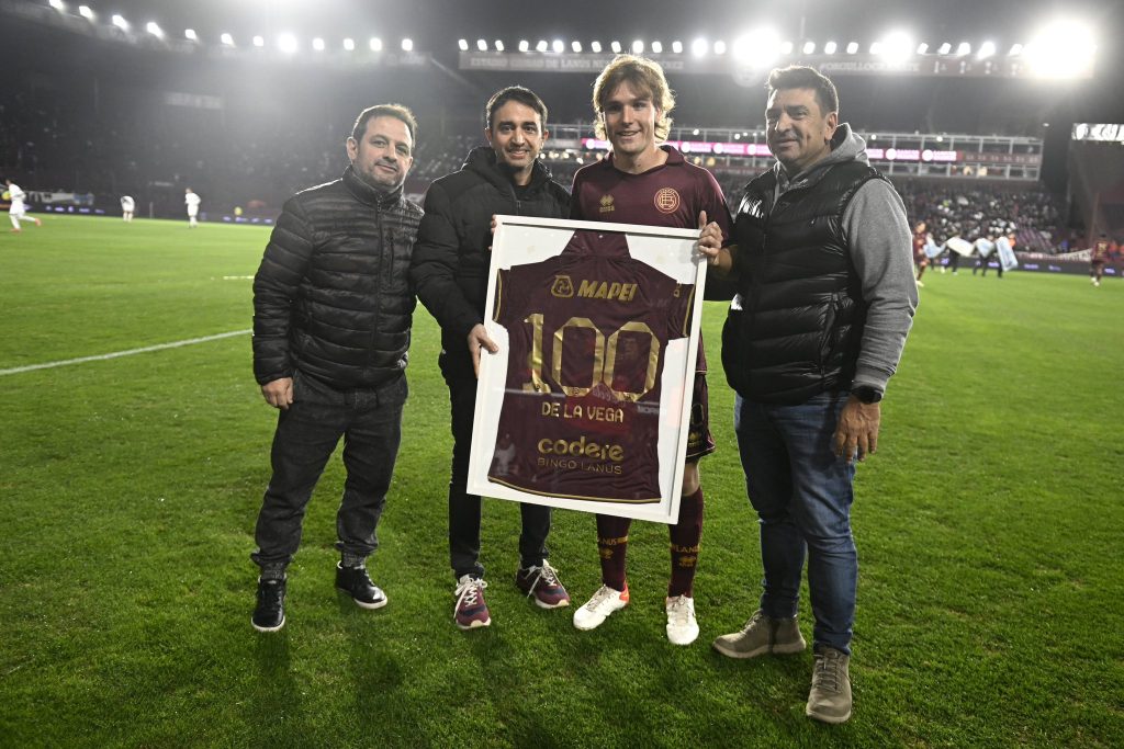 Homenaje al jugador Pedro de la Vega por haber alcanzado los 100 partidos como futbolista del Club Lanús. Foto: @clublanus