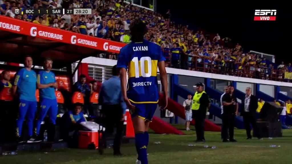 En Boca, Edinson Cavani debió ser reemplazado a los 73′ por una molestia muscular.